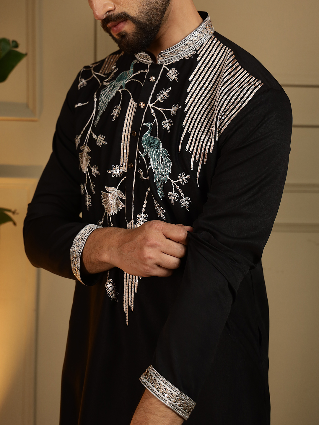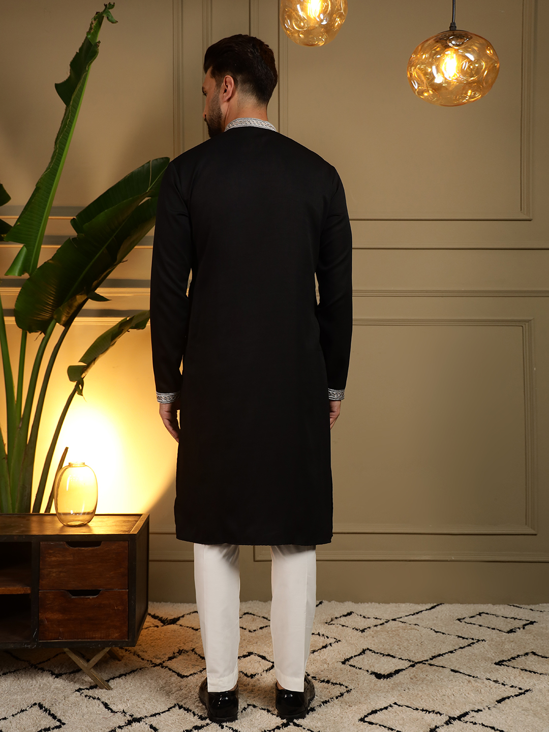 - Black Designer Embroidered Kurta for Men