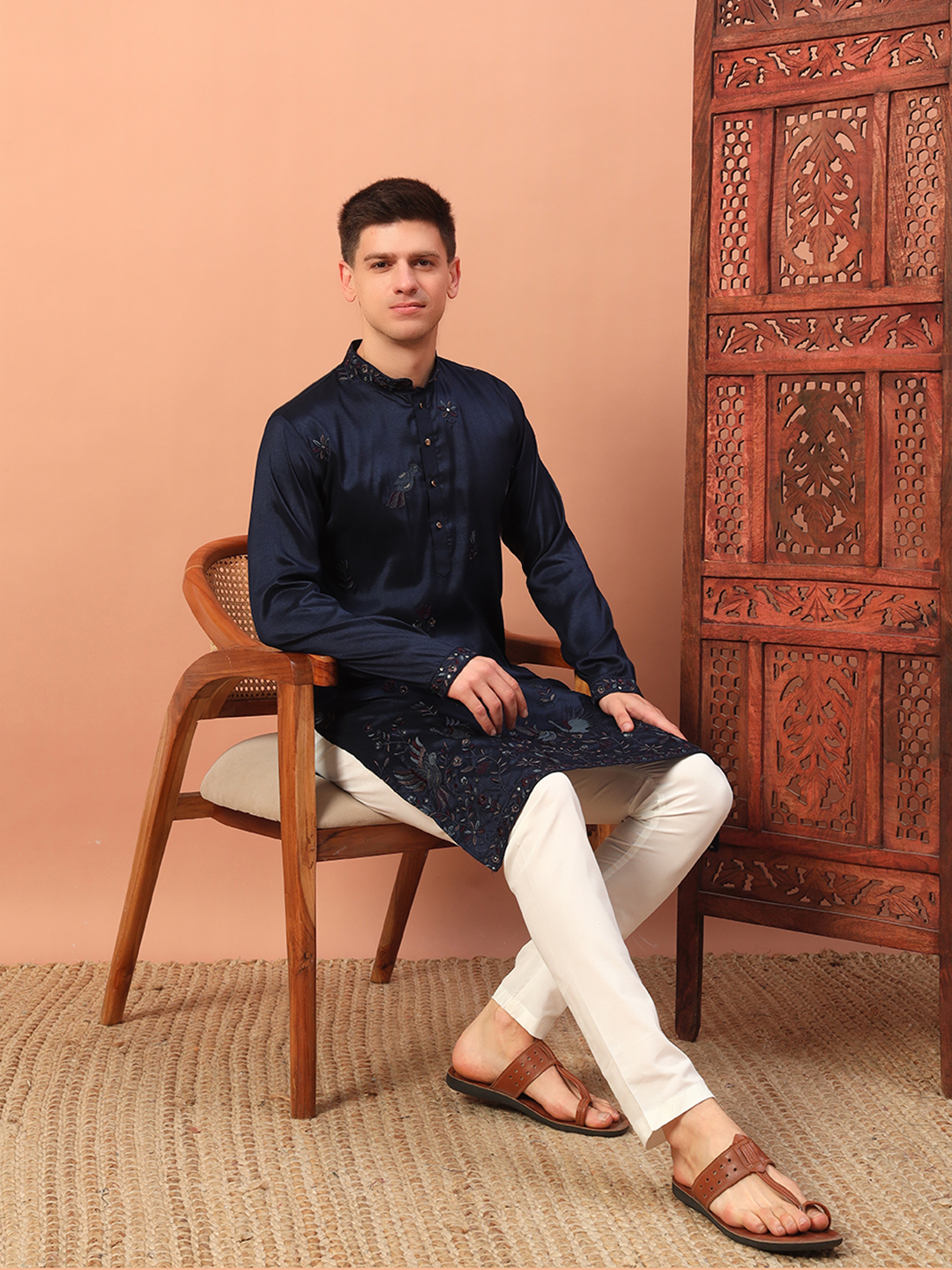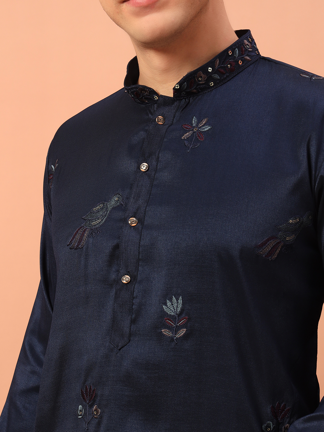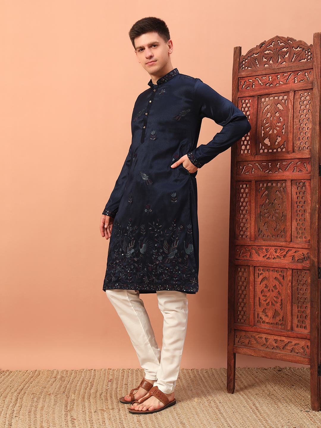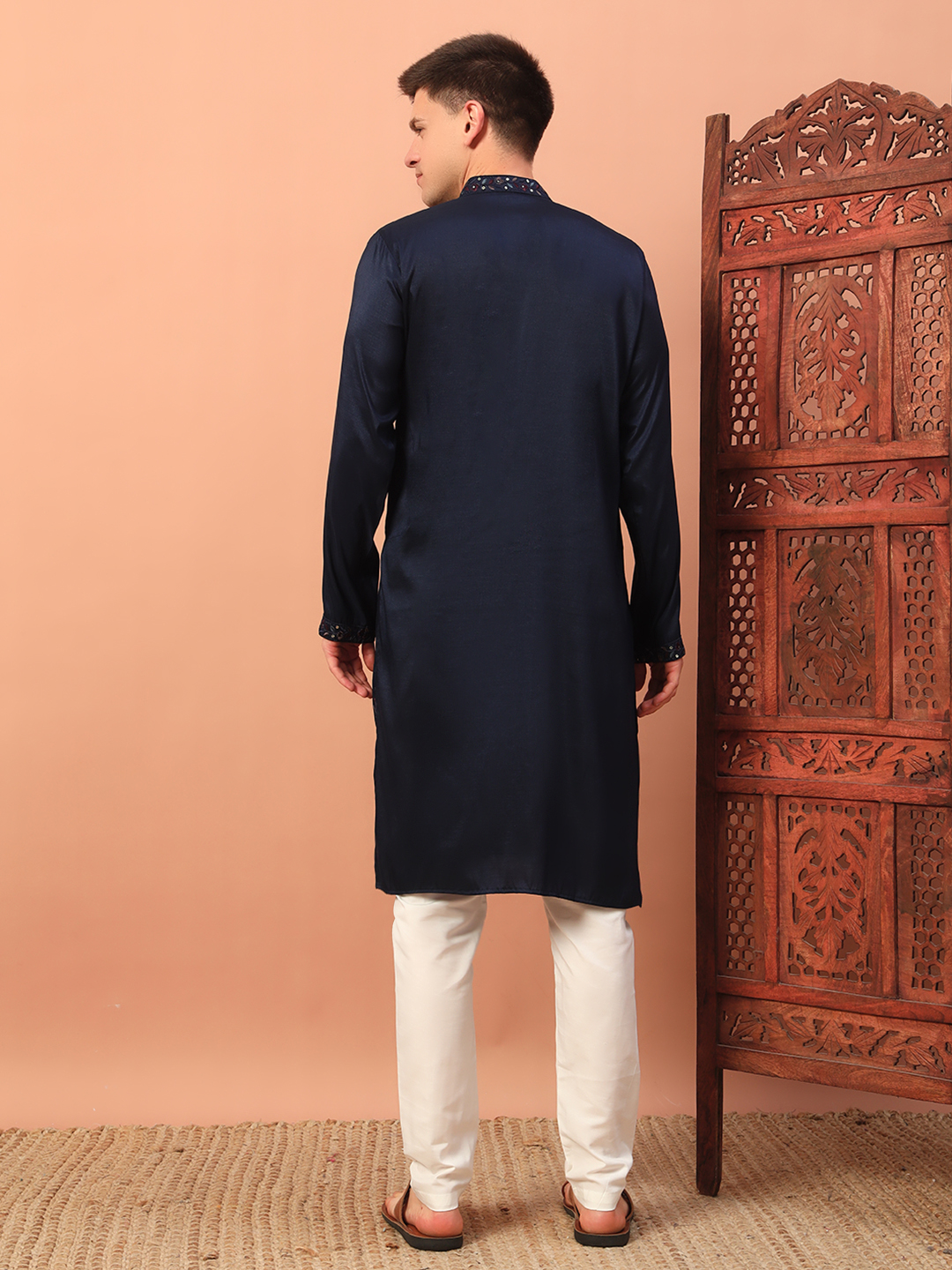 - Navy Blue Embroidered Kurta for Men