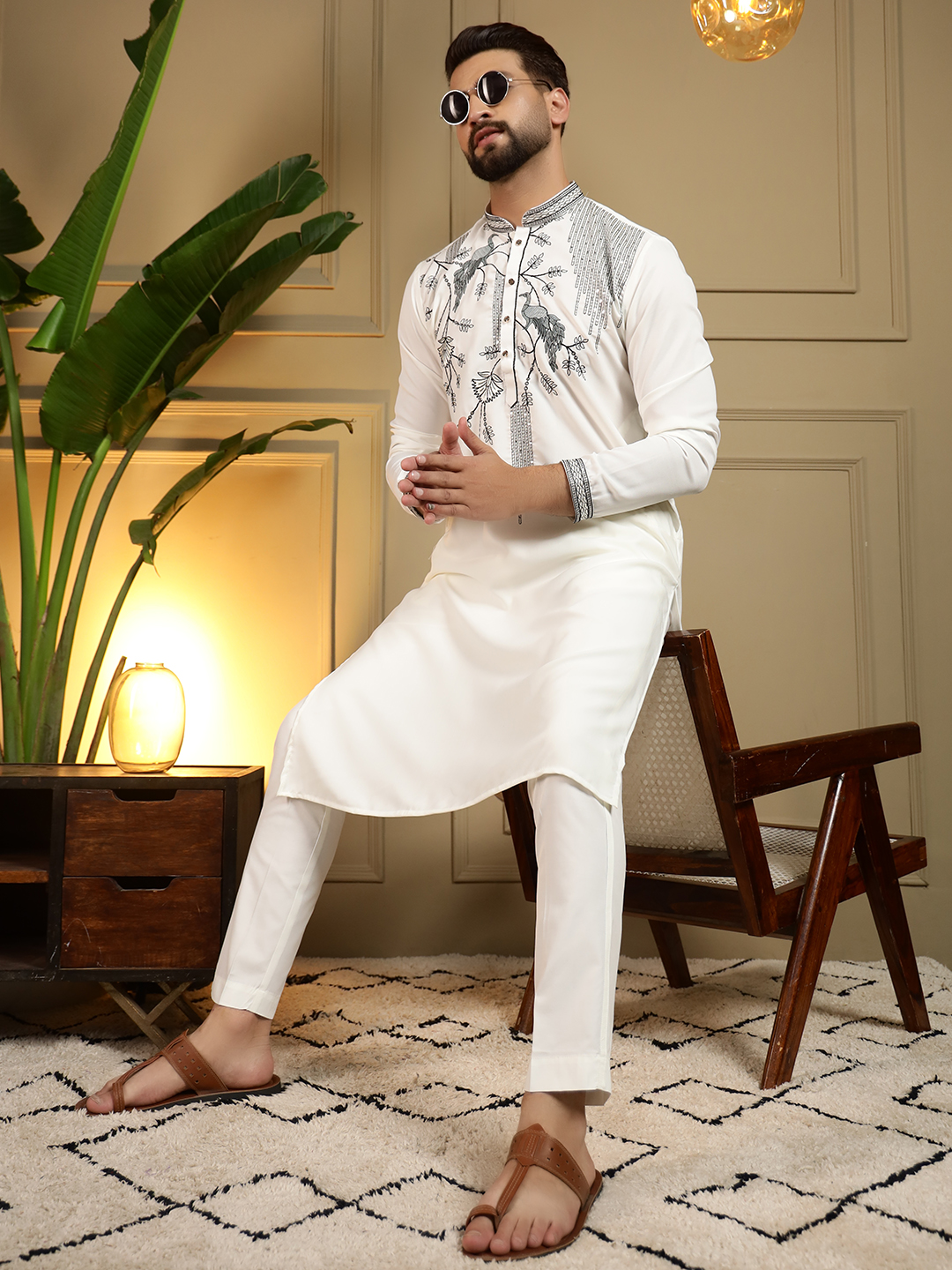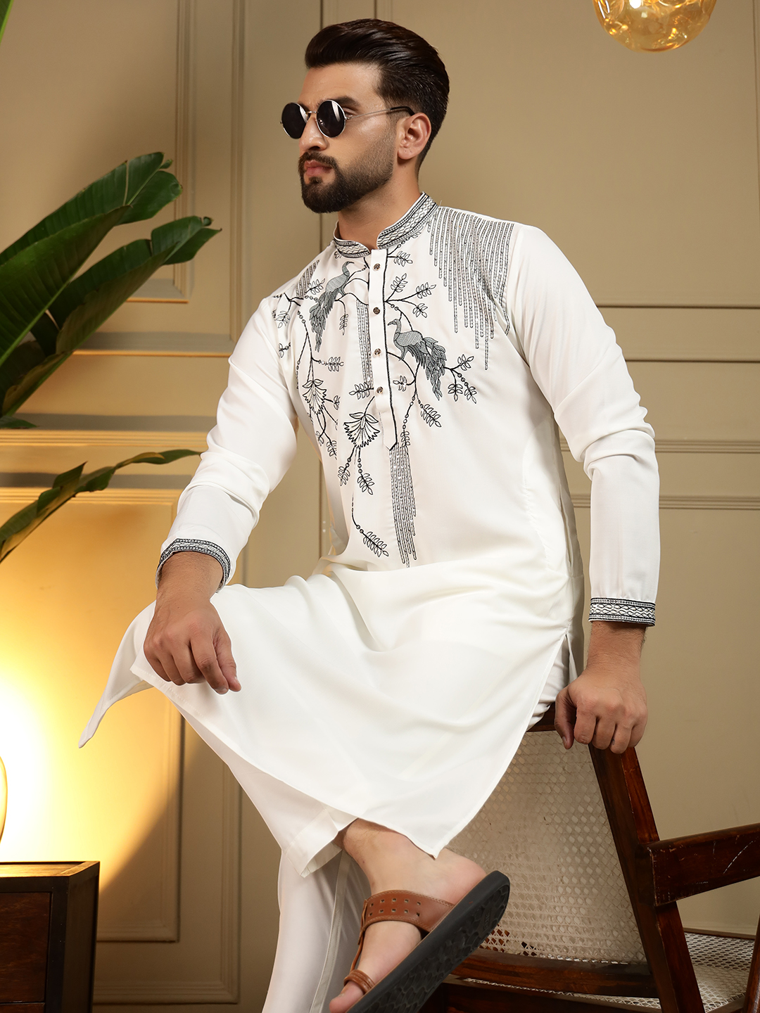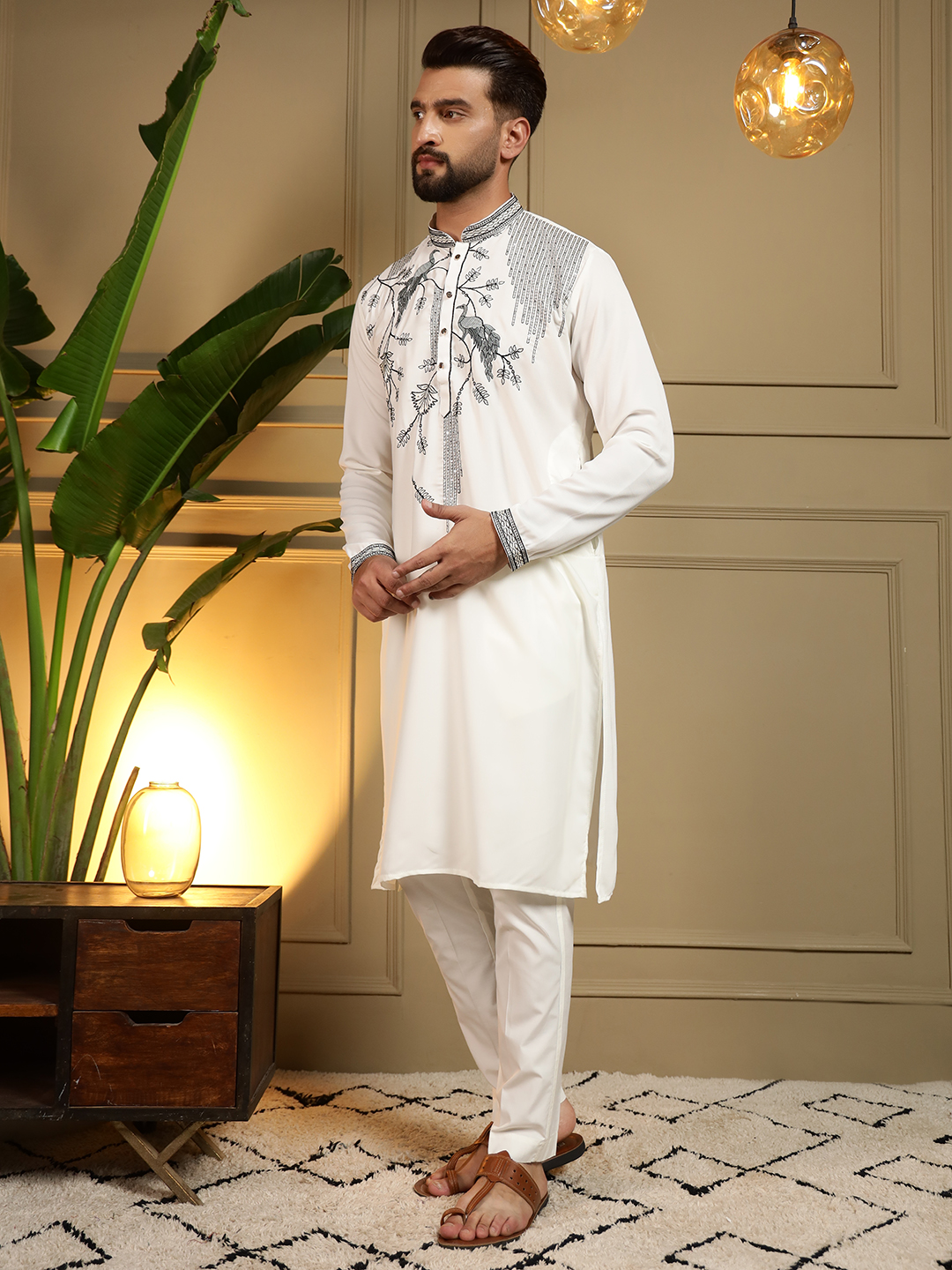 - Off White Designer Embroidered Kurta for Men