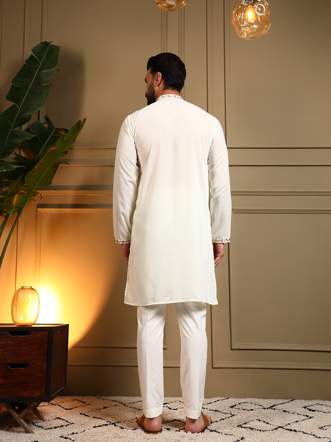 - Intricate resham and zari embroidery with traditional floral motifs .